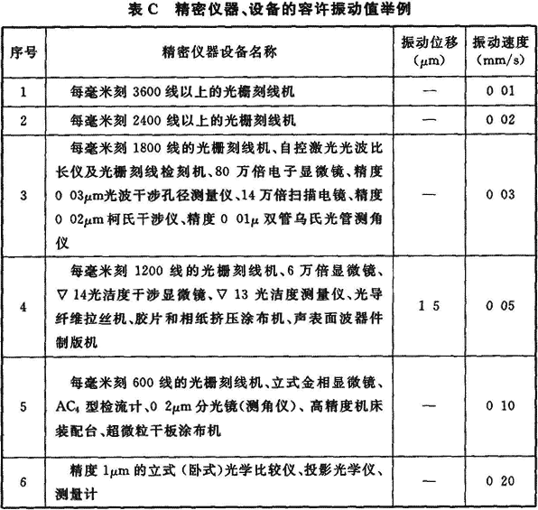 附錄C 精密儀器、設(shè)備的容許振動(dòng)值舉例